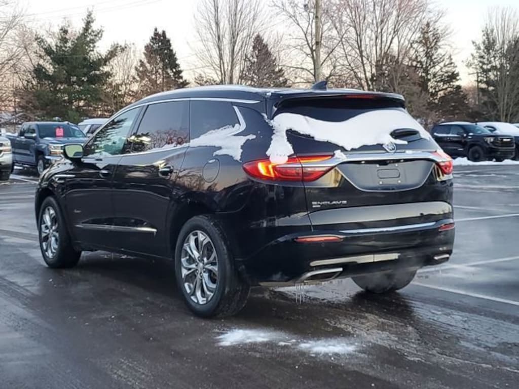 GOOD TIRES, REAR BACK UP CAMERA, LANE MONITOR ALERT, APPLE CAR PLAY ANDROID AUTO, NAVIGATION GPS, LEATHER, GOOD BRAKES, RECENT TRADE IN, Enclave Avenir, 4D Sport Utility, 3.6L V6 SIDI VVT, 9-Speed Automatic, AWD, Ebony Twilight Metallic, Ebony With Ebony Interior Accents Leather, 10 Speakers, 120-Volt Power Outlet, 1st & 2nd Row All-Weather Floor Liners (LPO), 3rd Row 60/40 Power Fold Split-Bench, 3rd Row All-Weather Floor Liner (LPO), 3rd row seats: split-bench, 5000lbs Trailering Package, 7-Passenger Seating, Adaptive Cruise Control, Alloy wheels, AM/FM radio: SiriusXM with 360L, Audio memory, Auto High-beam Headlights, Automatic Heated Steering Wheel, Avenir Package, Avenir Premium Suspension Package, Avenir Technology Package, Bose Performance-Enhanced 10-Speaker System, Brake assist, Chassis Continuously Variable Real Time Damping, Delay-off headlights, Driver 4-Way Power Lumbar Seat Adjuster, Electronic Stability Control, Enhanced Automatic Emergency Braking, Floor Liner Package (LPO), Front Bucket Seats, Front Passenger 4-Way Power Lumbar Seat Adjuster, Front Power Sliding Moonroof, Fully automatic headlights, HD Radio, HD Surround Vision, Heated 2nd Row Outboard Seats, Heated Driver & Front Passenger Seats, Heated front seats, Heated rear seats, Heavy-Duty Cooling System, Hitch Guidance, Hitch Guidance w/Hitch View, Inside Rearview Mirror w/Full Camera Display, Integrated Cargo Liner (LPO), Memory Package, Outside Heated Power-Adjustable Mirrors, Perforated Leather-Appointed Seat Trim, Power Liftgate, Power passenger seat, Power Tilt & Telescopic Steering Column, Preferred Equipment Group 1SP, Premium Ride Suspension, Rear window wiper, Variably intermittent wipers, Ventilated Driver & Front Passenger Seats, Ventilated front seats, Wheels & Front Door Badging, Wheels: 20 Aluminum w/Premium Pearl Nickel Finish, Wireless Charging.