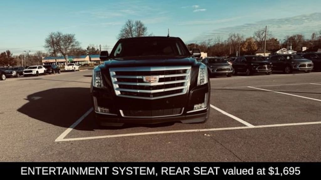 GOOD TIRES, Escalade ESV Luxury, 4D Sport Utility, Vortec 6.2L V8 SIDI, 8-Speed Automatic, 4WD, Black Raven, Jet Black w/Leather Seating Surfaces, 16 Speakers, Adjustable pedals, Air Conditioning, AM/FM radio: SiriusXM, Apple CarPlay, Auto High-beam Headlights, Auto tilt-away steering wheel, Auto-dimming door mirrors, Auto-dimming Rear-View mirror, Automatic temperature control, Bodyside moldings, Bose Centerpoint Surround Sound System, Bumpers: body-color, CD player, Compass, Delay-off headlights, Driver Awareness Package, Driver door bin, Driver vanity mirror, DVD-Audio, Forward Collision Alert, Front dual zone A/C, Front reading lights, Fully automatic headlights, Garage door transmitter, HD Radio, Heads-Up Display, Heated door mirrors, Heated steering wheel, IntelliBeam Headlamps, Lane Keep Assist, Memory seat, Navigation System, NavTraffic, Panic alarm, Pedal memory, Power door mirrors, Power driver seat, Power steering, Power windows, Radio data system, Radio: Cadillac CUE Info/Media Ctrl Sys w/Embd Nav, Rear air conditioning, Rear audio controls, Rear window defroster, Reconfigurable 4-Color Head-Up Display, Roof rack: rails only, Security system, Single Slot CD/MP3 Player, SiriusXM Satellite Radio, Speed control, Spoiler, Theft-Deterrent Alarm System, Theft-Deterrent Package, Turn signal indicator mirrors, Vehicle Inclination Sensor, Vehicle Interior Movement Sensor.
