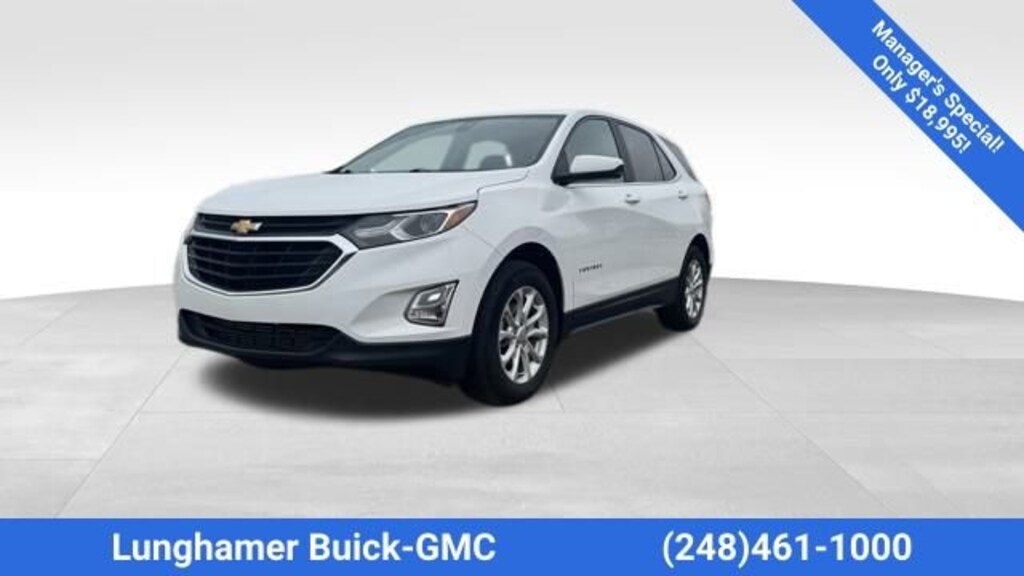 Clean CARFAX.Certified. Odometer is 1696 miles below market average! 26/31 City/Highway MPGSummit White 2021 Chevrolet Equinox LT FWD 6-Speed Automatic Electronic with Overdrive 1.5L DOHCGOOD TIRES, REAR BACK UP CAMERA, GOOD BRAKES, Equinox LT, 4D Sport Utility, 1.5L DOHC, 6-Speed Automatic Electronic with Overdrive, FWD, Summit White, Jet Black w/Premium Cloth Seat Trim, 17 Aluminum Wheels, 2 Rear USB Charging-Only Ports, 2 USB Ports & Auxiliary Input Jack, 2-Way Power Driver Lumbar Control Seat Adjuster, 6 Speaker Audio System Feature, 6 Speakers, Air Conditioning, Alloy wheels, AM/FM radio: SiriusXM, Apple CarPlay/Android Auto, Auto High-beam Headlights, Bluetooth® For Phone, Brake assist, Delay-off headlights, Electronic Stability Control, Front Bucket Seats, Front Center Armrest, Front Passenger 4-Way Manual Seat Adjuster, Fully automatic headlights, High-Intensity Discharge Headlights, Panic alarm, Power driver seat, Power steering, Power windows, Preferred Equipment Group 1LT, Premium audio system: Chevrolet Infotainment 3, Radio data system, Radio: Chevrolet Infotainment 3 System w/AM/FM, Rear window defroster, Rear window wiper, Remote keyless entry, Security system, Set of 4 Wheel Locks (LPO), Speed control, Split folding rear seat, Variably intermittent wipers.Awards:* 2021 IIHS Top Safety Pick with specific headlightsOur dealership is family owned and operated and has been serving Oakland County and its surrounding communities since 1954. Lunghamer Buick GMC is focused on excellent customer service. We will find the right vehicle for your life style, the right financing to fit your budget, and a total ownership experience second to none. We are here to service you. Joe Knows that service repairs never fit into your busy schedule. That's why we offer convenient service hours Monday through Friday, 8am-5pm. We feature highly trained service advisors and factory trained technicians, we feature state of the art equipment, and we realize that repairing your vehicle right the first time at a fair price will keep you coming back for years to come. We invite you to come down and take a stroll through our large inventory of new and used vehicles, talk to our sales and service advisors, have a free coffee, tea, or water and make Lunghamer Buick GMC your sales and servicing dealer. Call us today at 248-461-1000 and let us know how we can help!JOE KNOWS USED CARS! * CPO APR AVAILABLE ON SELECT MODELS FOR WELL QUALIFIED BUYERS.