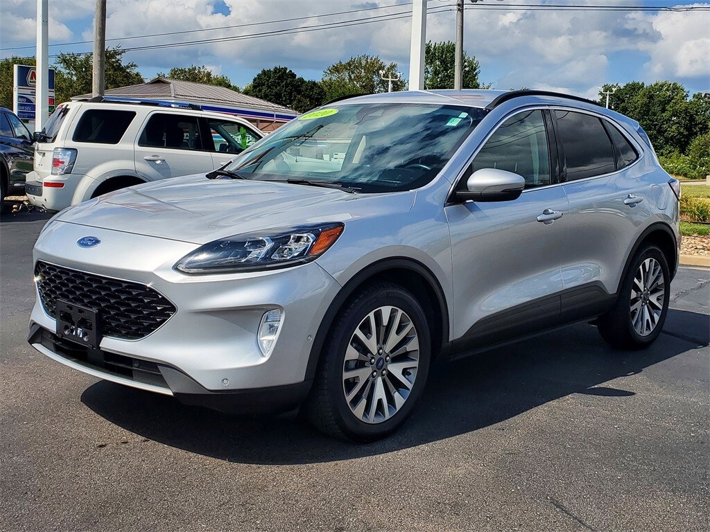 Ingot Silver Metallic 2020 Ford Escape Hybrid Titanium AWD eCVT 2.5L iVCT 2020 Ford Escape Hybrid, *AWD*, *ONE OWNER*, Escape Hybrid Titanium, 4D Sport Utility, 2.5L iVCT, eCVT, AWD, Ingot Silver Metallic, Ebony Black w/Heated Leather-Trimmed Front Sport Contour Seats, 10 Speakers, Air Conditioning, AM/FM radio: SiriusXM, Auto High-beam Headlights, Automatic temperature control, Equipment Group 400A, Exterior Parking Camera Rear, FordPass Connect, Front dual zone A/C, Front fog lights, Fully automatic headlights, Heated Leather-Trimmed Front Sport Contour Seats, Heated steering wheel, Memory seat, Navigation System, Pedestrian Alert Sounder, Power driver seat, Power Liftgate, Power passenger seat, Power windows, Radio: B&O Sound System by Bang & Olufsen, Rear window defroster, Speed control, SYNC 3 Communications & Entertainment System, Telescoping steering wheel, Voice-Activated Touchscreen Navigation System, Wheels: 19" Machined-Face Aluminum, Wireless Charging Pad. ASK ABOUT OUR $2000 MINIMUM TRADE OFFER!