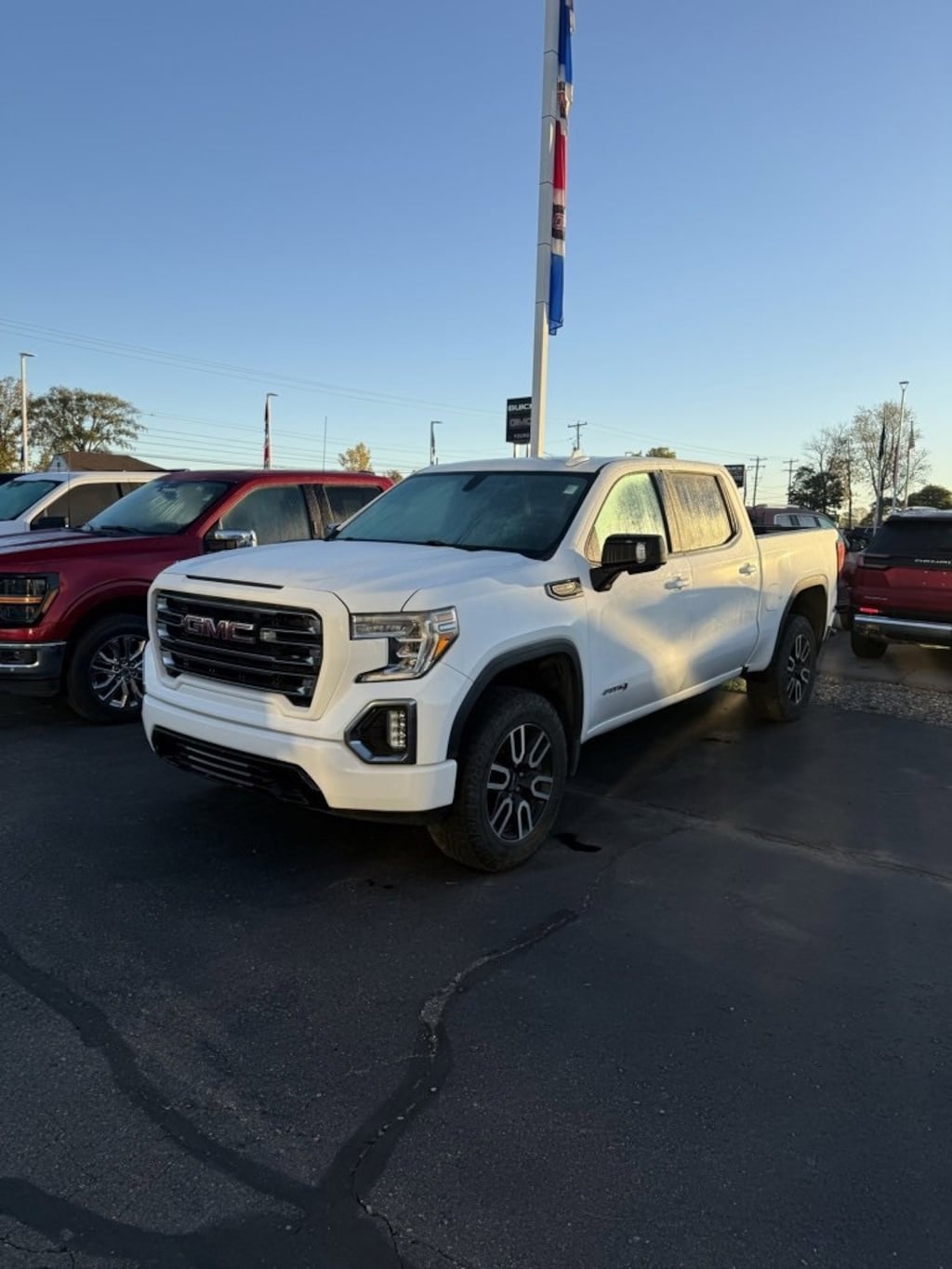Summit White 2021 GMC Sierra 1500 AT4 4WD 10-Speed Automatic EcoTec3 6.2L V8 2021 GMC Sierra 1500, *4X4*, Sierra 1500 AT4, 4D Crew Cab, EcoTec3 6.2L V8, 10-Speed Automatic, 4WD, Summit White, Jet Black With Kalahari Accents Leather, 12-Volt Rear Auxiliary Power Outlet, 120-Volt Instrument Panel Power Outlet, 170 Amp Alternator, 2 USB Ports, 2 USB Ports (1st Row), 3.23 Rear Axle Ratio, 4.2" Diagonal Color Display Driver Info Center, 4G LTE Wi-Fi Hotspot Capable, Auto-Locking Rear Differential, Auxiliary External Transmission Oil Cooler, Body-Color Surround Grille, Cat-Back Performance Exhaust (LPO), Color-Keyed Carpeting Floor Covering, Compass, Deep-Tinted Glass, Electric Rear-Window Defogger, Electrical Lock Control Steering Column, Floor-Mounted Center Console, Front Prem Floor Liners w/Removable Carpet Insert, GMC Connected Access Capable, HD Rear Vision Camera, Heated Driver & Front Outboard Passenger Seating, Heavy-Duty Air Filter, Hill Descent Control, Integrated Trailer Brake Controller, Keyless Open & Start, LED Cargo Area Lighting, Manual Tilt-Wheel & Telescoping Steering Column, Off-Road Performance Package (DISC), OnStar & GMC Connected Services Capable, Performance Air Intake System (LPO) (DISC), Performance Upgrade Package (LPO) (DISC), Power Door Locks, Power Front Passenger Windows w/Express Up/Down, Power Front Windows w/Driver Express Up/Down, Power Rear Windows w/Express Down, Preferred Equipment Group 4SB, ProGrade Trailering System, Rear Dual USB Charging-Only Ports, Rear Wheelhouse Liners, Red Recovery Hooks, Remote Vehicle Starter System, Spray-On Pickup Bed Liner w/AT4 Logo, Steering Wheel Audio Controls, Theft Deterrent System (Unauthorized Entry), Trailering Package, Ventilated Driver & Front Passenger Seats, Wheels: 20" x 9" Machined Aluminum.