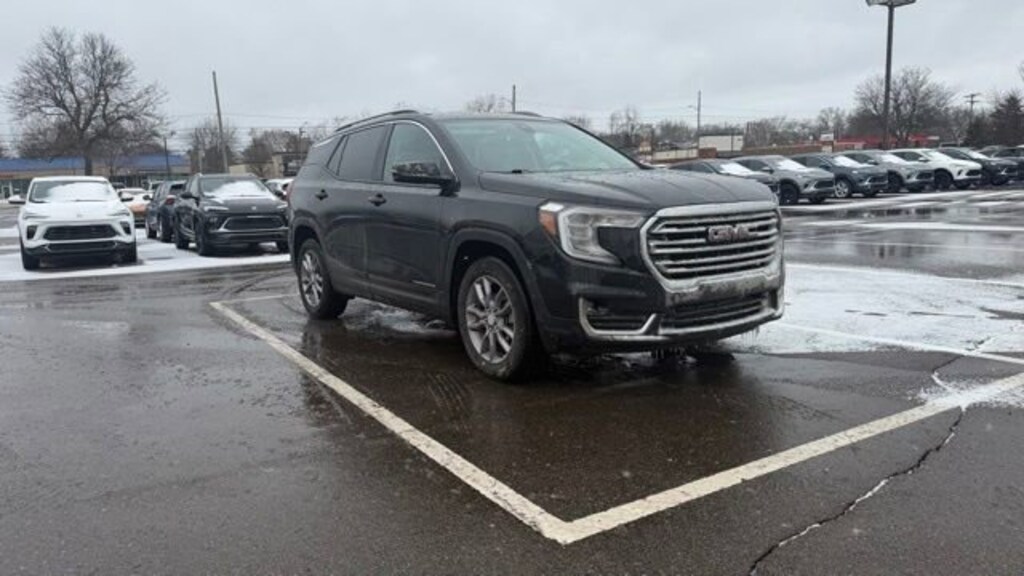 Clean CARFAX. CARFAX One-Owner.Certified. Recent Arrival! 24/28 City/Highway MPGEbony Twilight Metallic 2023 GMC Terrain SLT AWD 9-Speed Automatic 1.5L DOHCGOOD TIRES, REAR BACK UP CAMERA, LEATHER, GOOD BRAKES, RECENT TRADE IN, Terrain SLT, 4D Sport Utility, 1.5L DOHC, 9-Speed Automatic, AWD, Ebony Twilight Metallic, Jet Black Leather, 2 USB Data Ports w/SD Card Reader, 6 Speakers, 6-Speaker Audio System Feature, 6-Way Power Front Passenger Seat, 8-Way Power Driver Seat Adjuster, Air Conditioning, AM/FM radio: SiriusXM, Auto High-beam Headlights, Automatic temperature control, Delay-off headlights, Driver & Front Passenger Heated Seats, Front Bucket Seats, Front Center Armrest, Front dual zone A/C, Front fog lights, Front Passenger 2-Way Power Lumbar, Fully automatic headlights, Heated door mirrors, Heated front seats, Heated steering wheel, Lane Departure Warning System, Memory seat, Perforated Leather-Appointed Seat Trim, Power Driver Lumbar Control, Power passenger seat, Preferred Equipment Group 4SA, Radio data system, Radio: GMC Infotainment Audio System w/8 Display, Rear window defroster, Wheels: 18 x 7 Silver Painted Aluminum.Our dealership is family owned and operated and has been serving Oakland County and its surrounding communities since 1954. Lunghamer Buick GMC is focused on excellent customer service. We will find the right vehicle for your life style, the right financing to fit your budget, and a total ownership experience second to none. We are here to service you. Joe Knows that service repairs never fit into your busy schedule. That's why we offer convenient service hours Monday through Friday, 8am-5pm. We feature highly trained service advisors and factory trained technicians, we feature state of the art equipment, and we realize that repairing your vehicle right the first time at a fair price will keep you coming back for years to come. We invite you to come down and take a stroll through our large inventory of new and used vehicles, talk to our sales and service advisors, have a free coffee, tea, or water and make Lunghamer Buick GMC your sales and servicing dealer. Call us today at 248-461-1000 and let us know how we can help!JOE KNOWS USED CARS! * CPO APR AVAILABLE ON SELECT MODELS FOR WELL QUALIFIED BUYERS.