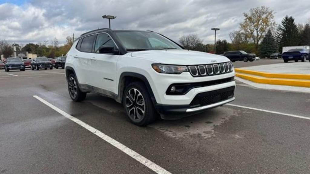 CARFAX One-Owner.Recent Arrival! 22/30 City/Highway MPGBright White Clearcoat 2022 Jeep Compass Limited 4WD 9-Speed 948TE Automatic 2.4L I4LEATHER, GOOD BRAKES, RECENT TRADE IN, Compass Limited, 4D Sport Utility, 2.4L I4, 9-Speed 948TE Automatic, 4WD, Bright White Clearcoat, Black w/Leather Trimmed Bucket Seats, 6 Speakers, Air Conditioning, Alloy wheels, AM/FM radio: SiriusXM, Auto High-beam Headlights, Automatic temperature control, Brake assist, Delay-off headlights, Electronic Stability Control, Four wheel independent suspension, Front Bucket Seats, Front Center Armrest w/Storage, Front dual zone A/C, Front fog lights, Heated front seats, Leather Trimmed Bucket Seats, ParkView Rear Back-Up Camera, Passenger door bin, Power driver seat, Power steering, Power windows, Quick Order Package 2GG, Radio: Uconnect 5 w/10.1 Display, Rear window defroster, Remote keyless entry, Split folding rear seat, Steering wheel mounted audio controls, Traction control, Wheels: 18 x 7 Painted Diamond Cut Aluminum.Our dealership is family owned and operated and has been serving Oakland County and its surrounding communities since 1954. Lunghamer Buick GMC is focused on excellent customer service. We will find the right vehicle for your life style, the right financing to fit your budget, and a total ownership experience second to none. We are here to service you. Joe Knows that service repairs never fit into your busy schedule. That's why we offer convenient service hours Monday through Friday, 8am-5pm. We feature highly trained service advisors and factory trained technicians, we feature state of the art equipment, and we realize that repairing your vehicle right the first time at a fair price will keep you coming back for years to come. We invite you to come down and take a stroll through our large inventory of new and used vehicles, talk to our sales and service advisors, have a free coffee, tea, or water and make Lunghamer Buick GMC your sales and servicing dealer. Call us today at 248-461-1000 and let us know how we can help!JOE KNOWS USED CARS! * CPO APR AVAILABLE ON SELECT MODELS FOR WELL QUALIFIED BUYERS.