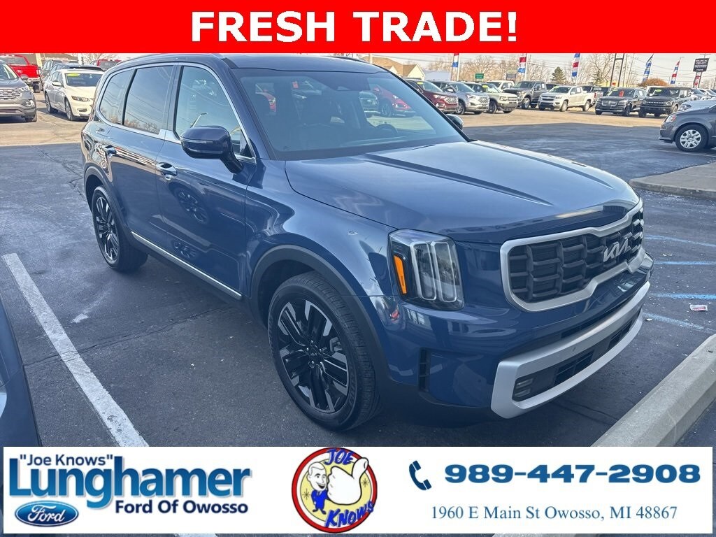 Midnight Lake Blue 2025 Kia Telluride SX AWD 8-Speed Automatic 3.8L V6 DOHC 2025 Kia Telluride, *AWD*, *ONE OWNER*, *NAVIGATION*, *POWER SUNROOF*, *LEATHER*, *HEATED SEATS*, *REMOTE START*, *BACK UP CAMERA*, CAPTAIN'S CHAIRS, Telluride SX, 4D Sport Utility, 3.8L V6 DOHC, 8-Speed Automatic, AWD, Midnight Lake Blue, Black w/Leather Seat Trim, 10 Speakers, 2nd Row Captain Chairs, Air Conditioning, Apple CarPlay & Android Auto, Auto High-beam Headlights, Auto-leveling suspension, Automatic temperature control, Exterior Parking Camera Rear, Front dual zone A/C, Front fog lights, Fully automatic headlights, Heated & Ventilated Front Bucket Seats, Leather Seat Trim, Memory seat, Navigation System, Power driver seat, Power Liftgate, Power moonroof, Power passenger seat, Power windows, Radio: AM/FM Harman Kardon Audio System, Rear air conditioning, Rear audio controls, Rear window defroster, Reclining 3rd row seat, Speed control, SX Captain's Chair Package, Tilt steering wheel, Wheels: 20" x 7.5" Black Finish.