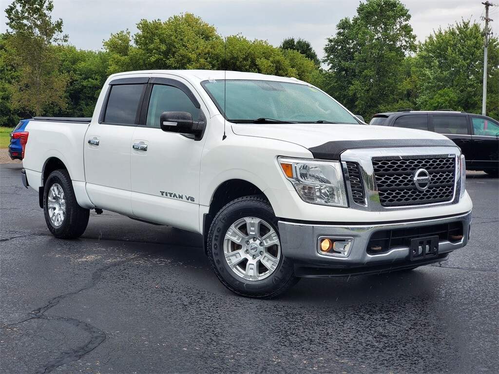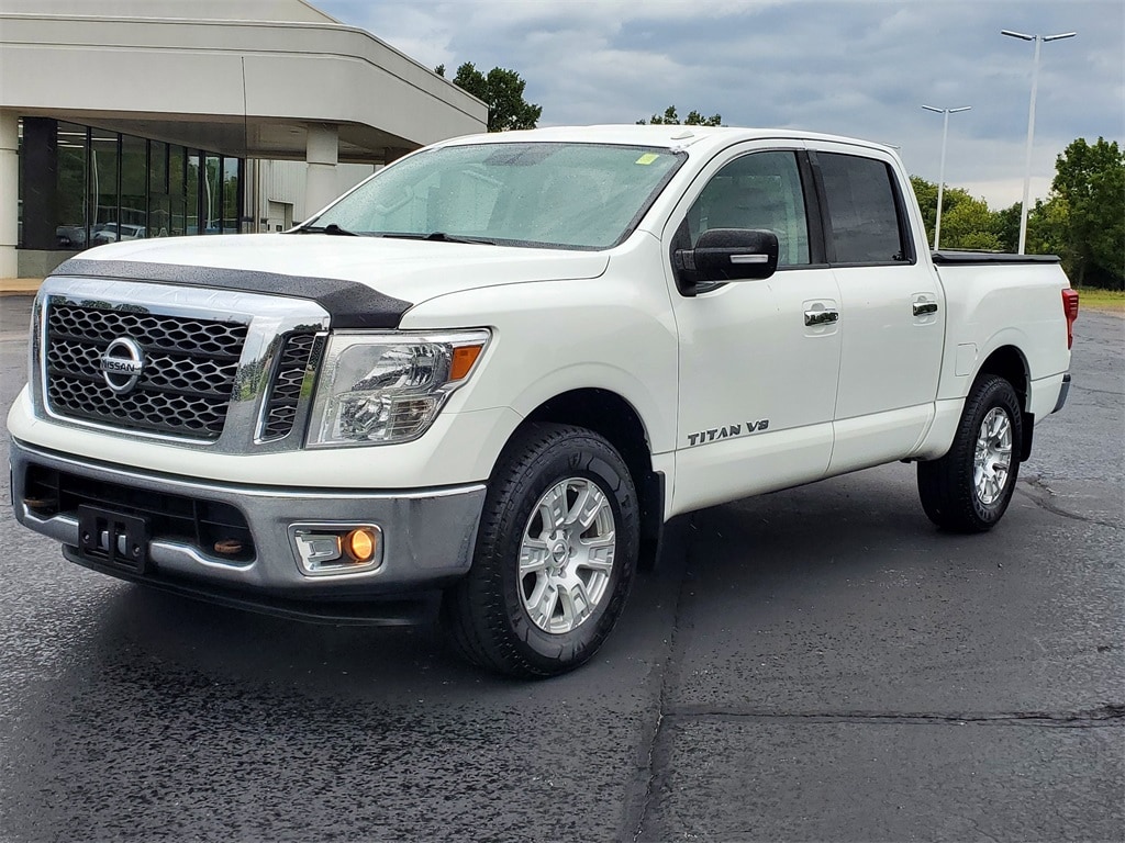 Pearl White 2018 Nissan Titan SV 4WD 7-Speed Automatic 5.6L V8 *4X4*, *ACCIDENT FREE HISTORY*, *BLUETOOTH*, *BACK UP CAMERA*, BED LINER, BED COVER, 4D Crew Cab, Black w/Cloth Seat Trim, ABS brakes, Alloy wheels, Electronic Stability Control, Heated door mirrors, Illuminated entry, Low tire pressure warning, Remote keyless entry, Traction control.