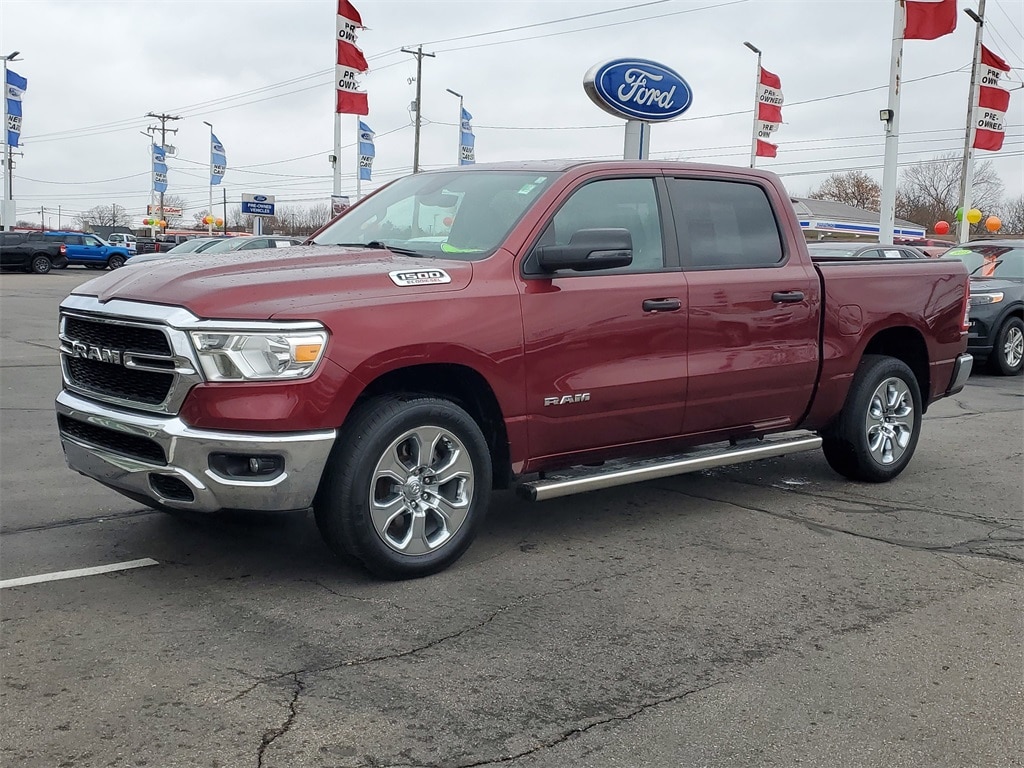 Delmonico Red Pearlcoat 2023 Ram 1500 Big Horn/Lone Star 4WD 8-Speed Automatic EcoDiesel 3.0L V6 2023 Ram 1500, *4X4*, *TOWING PACKAGE*, 1500 Big Horn/Lone Star, 4D Crew Cab, EcoDiesel 3.0L V6, 8-Speed Automatic, 4WD, Delmonico Red Pearlcoat, Diesel Gray/Black Cloth, 2nd Row In Floor Storage Bins, 3.21 Rear Axle Ratio, 4G LTE Wi-Fi Hot Spot, 6 Speakers, 8.4" Touchscreen Display, Air Conditioning, AM/FM radio, Apple CarPlay, Auto-Dimming Exterior Driver Mirror, Auto-Dimming Rear-View Mirror, Big Horn Badge, Big Horn Level 1 Equipment Group, Black Exterior Mirrors, Black Premium Power Mirrors, Bluetooth Handsfree Phone & Audio, Class IV Receiver Hitch, Connectivity - US/Canada, Convex Wide-Angle Exterior Mirror Insert, Electric Shift-On-Demand Transfer Case, Exterior Mirrors Courtesy Lamps, Exterior Mirrors w/Heating Element, Exterior Mirrors w/Supplemental Signals, For Details, Visit DriveUconnect.com, For More Info, Call 800-643-2112, Front Fog Lamps, Fully automatic headlights, Glove Box Lamp, Google Android Auto, GPS Antenna Input, Heated Front Seats, Heated Steering Wheel, Integrated Center Stack Radio, ParkView Rear Back-Up Camera, Passenger Sun Visor w/Illuminated Mirror, Power windows, Power-Folding Mirrors, Quick Order Package 28Z Big Horn (DISC), Radio: Uconnect 3 w/5" Display, Radio: Uconnect 5 W w/8.4" Display, Rear Dome w/On/Off Switch Lamp, Rear Power Sliding Window, Rear Window Defroster, SiriusXM Satellite Radio, Speed control, Tilt steering wheel, USB Host Flip, Wheels: 20" x 9" Aluminum Chrome Clad.