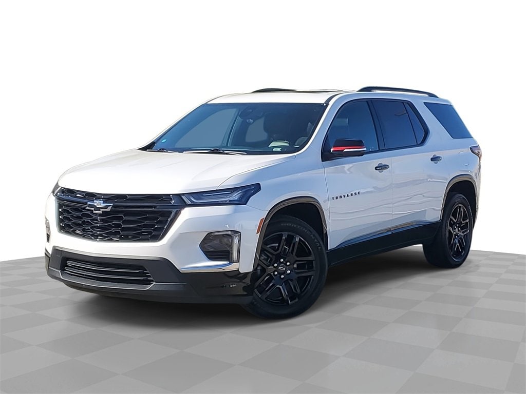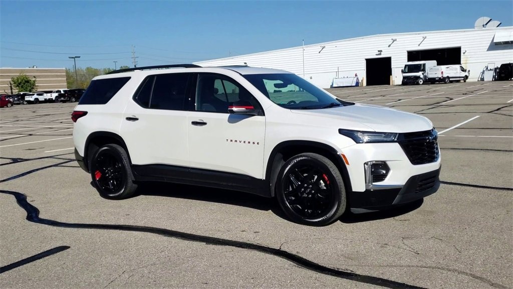 CARFAX One-Owner.Priced below KBB Fair Purchase Price! Recent Arrival! Odometer is 3587 miles below market average! 18/27 City/Highway MPGIridescent Pearl Tricoat 2023 Chevrolet Traverse Premier FWD 9-Speed Automatic 3.6L V6 SIDI VVTREMAINDER OF FACTORY WARRANTY, FACTORY CERTIFIED, INCLUDES WARRANTY, GOOD TIRES, GOOD BRAKES, REAR BACK UP CAMERA, LANE MONITOR ALERT, APPLE CAR PLAY ANDROID AUTO, NAVIGATION GPS, LEATHER, RECENT TRADE IN, Traverse Premier, 4D Sport Utility, 3.6L V6 SIDI VVT, 9-Speed Automatic, FWD, Iridescent Pearl Tricoat, Jet Black w/Perforated Leather-Appointed Seat Trim, 10 Speakers, 1st & 2nd Row All-Weather Floor Liner (LPO), 3.49 Axle Ratio, 3rd Row All-Weather Floor Liner (LPO), 4-Wheel Disc Brakes, 6-Way Power Front Passenger Seat, 8-Way Power Driver Seat Adjuster, ABS brakes, Air Conditioning, AM/FM radio: SiriusXM with 360L, Auto High-beam Headlights, Automatic temperature control, Black Bowtie, Black Door Handles, Black Roof Rails, Bose Premium 10-Speaker Audio System Feature, Brake assist, Delay-off headlights, Dual front impact airbags, Dual front side impact airbags, Dual SkyScape 2-Panel Power Sunroof, Electronic Stability Control, Emergency communication system, Exterior Parking Camera Rear, Floor Liner Package (LPO), Four wheel independent suspension, Front anti-roll bar, Front dual zone A/C, Fully automatic headlights, Heated 2nd Row Outboard Position Seats, Heated Driver & Front Passenger Seats, Heated front seats, Heated rear seats, Heavy-Duty Cooling System, Hitch Guidance w/Hitch View, Integrated Cargo Liner (LPO), Low tire pressure warning, Memory seat, Navigation System, Occupant sensing airbag, Ornamentation, Overhead airbag, Panic alarm, Passenger door bin, Perforated Leather-Appointed Seat Trim, Power Driver Lumbar Control, Power driver seat, Power Liftgate, Power passenger seat, Power steering, Power windows, Preferred Equipment Group 1LZ, Premium audio system: Chevrolet Infotainment 3 Plus, Radio data system, Radio: Chevrolet Infotainment 3 Plus System w/Navi, Rear air conditioning, Rear anti-roll bar, Rear window defroster, Rear window wiper, Redline Accent Decals (LPO), Redline Edition, Remote keyless entry, Security system, SiriusXM w/360L, Speed control, Speed-sensing steering, Steering wheel memory, Steering wheel mounted audio controls, Traction control, Trailering Assist Guidelines, Trailering Equipment, Variably intermittent wipers, Ventilated Driver & Front Passenger Seats, Ventilated front seats, Wheels: 20 Gloss Black Painted Alum w/Red Stripes, Wheels: 20 Metallic Machined-Face Aluminum, 3rd row seats: split-bench, Alloy wheels, Apple CarPlay/Android Auto, Auto-dimming door mirrors, Auto-dimming Rear-View mirror, Bright Thatcham Wheel Locks (LPO), Bumpers: body-color, Compass, Driver door bin, Driver vanity mirror, Front Bucket Seats, Front Center Armrest, Front Passenger 2-Way Power Lumbar, Front reading lights, Garage door transmitter, Heated door mirrors, Heated steering wheel, Illuminated entry, Leather steering wheel, Outside temperature display, Overhead console, Passenger vanity mirror, Power door mirrors, Rear reading lights, Spoiler, Tachometer, Telescoping steering wheel, Tilt steering wheel, Trip computer, Turn signal indicator mirrors, Voltmeter, Traverse Premier, 4D Sport Utility, 3.6L V6 SIDI VVT, 9-Speed Automatic, FWD, Iridescent Pearl Tricoat, Jet Black w/Perforated Leather-Appointed Seat Trim, 10 Speakers, 1st & 2nd Row All-Weather Floor Liner (LPO), 3.49 Axle Ratio, 3rd Row All-Weather Floor Liner (LPO), 4-Wheel Disc Brakes, 6-Way Power Front Passenger Seat, 8-Way Power Driver Seat Adjuster, ABS brakes, Air Conditioning, AM/FM radio: SiriusXM with 360L, Auto High-beam Headlights, Automatic temperature control, Black Bowtie, Black Door Handles, Black Roof Rails, Bose Premium 10-Speaker Audio System Feature, Brake assist, Delay-off headlights, Dual front impact airbags, Dual front side impact airbags, Dual SkyScape 2-Panel Power S