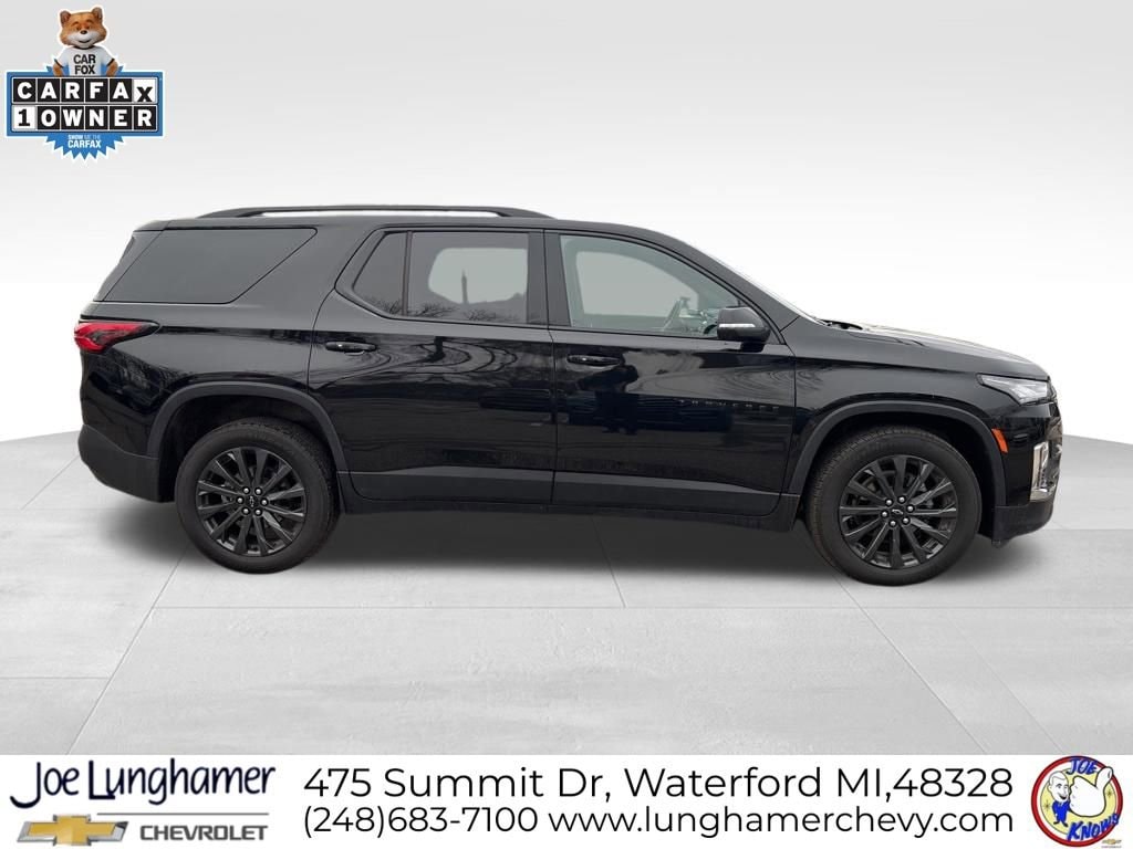 The interior of the Traverse RS is a haven of comfort and convenience. Sink into the heated, 8-way power-adjustable driver's seat and enjoy the commanding view of the road ahead. The Chevrolet Infotainment 3 Plus system with built-in navigation and a premium Bose audio system provide endless entertainment and connectivity options. And with seating for up to 8 passengers, you'll have plenty of room to accommodate your family and friends.