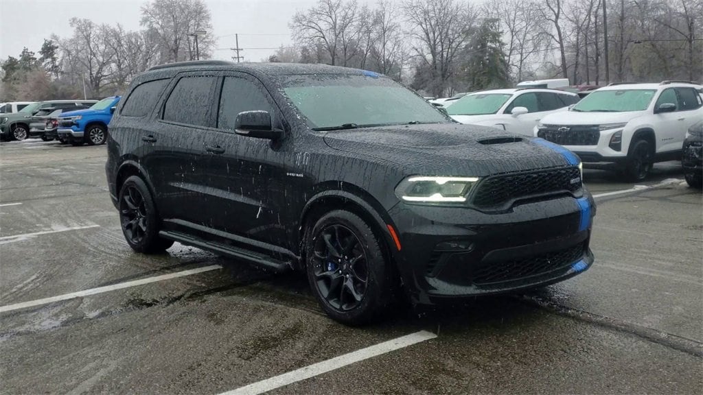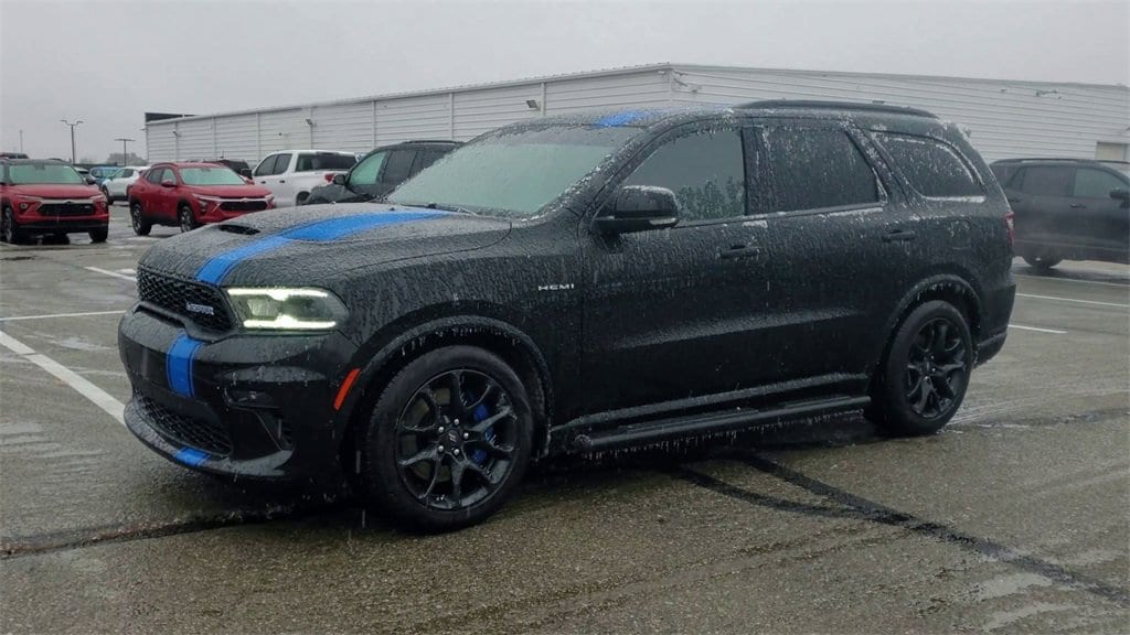 REMAINDER OF FACTORY WARRANTY, FACTORY CERTIFIED, INCLUDES WARRANTY, GOOD TIRES, GOOD BRAKES, REAR BACK UP CAMERA, LANE MONITOR ALERT, APPLE CAR PLAY ANDROID AUTO, NAVIGATION GPS, LEATHER, RECENT TRADE IN, Durango R/T, 4D Sport Utility, HEMI 5.7L V8 Multi Displacement VVT, 8-Speed Automatic, AWD, DB Black Clearcoat, Black w/Leather Trimmed Bucket Seats, 145 mph Maximum Speed Calibration, 160 mph Primary Speedometer, 2nd Row Fold/Tumble Captain Chairs, 2nd Row Mini Console w/Cupholders, 2nd Row Seat Mounted Inboard Armrests, 3.09 Rear Axle Ratio, 3rd row seats: split-bench, 4-Wheel Disc Brakes, 6-Passenger Seating, 7 & 4 Pin Wiring Harness, 9 Speakers, ABS brakes, Active Noise Control System, Adaptive Damping, Air Conditioning, AM/FM radio: SiriusXM w/360L, Anti-whiplash front head restraints, Apple CarPlay/Android Auto, Audio memory, Auto High-beam Headlights, Auto-dimming door mirrors, Auto-dimming Rear-View mirror, Auto-leveling suspension, Automatic Headlamp Leveling System, Automatic temperature control, Black Brembo Brakes, Brake assist, Bumpers: body-color, Class IV Receiver Hitch, Compass, Delay-off headlights, Driver door bin, Driver vanity mirror, Dual front impact airbags, Dual front side impact airbags, Electronic Limited Slip Differential Rear Axle, Electronic Stability Control, Emergency communication system: SiriusXM Guardian, Four wheel independent suspension, Front anti-roll bar, Front Bucket Seats, Front Center Armrest w/Storage, Front dual zone A/C, Front fog lights, Front reading lights, Fully automatic headlights, Garage door transmitter, Heated door mirrors, Heated front seats, Heated rear seats, Heated steering wheel, Heavy-Duty Engine Cooling, High Perform Suspension, High Performance Exhaust, Illuminated entry, Knee airbag, Leather steering wheel, Leather Suede Bucket Seats, Low tire pressure warning, Memory seat, Mini Console 3rd Row Floor Mat, Navigation system: TomTom, Occupant sensing airbag, Outside temperature display, Overhead airbag, Overhead console, Panic alarm, ParkView Rear Back-Up Camera, Passenger door bin, Passenger vanity mirror, Performance Tuned Steering, Power door mirrors, Power driver seat, Power Liftgate, Power passenger seat, Power steering, Power Sunroof, Power windows, Quadra-Trac Active on Demand 4WD, Quick Order Package 22S R/T, Radio data system, Radio: Uconnect 5 Nav w/10.1 Display, Rain sensing wipers, Rear air conditioning, Rear anti-roll bar, Rear Load Leveling Suspension, Rear reading lights, Rear seat center armrest, Rear window defroster, Rear window wiper, Remote keyless entry, Run Flat Tires, Security system, Speed control, Speed-sensing steering, Speed-Sensitive Wipers, Split folding rear seat, Spoiler, Sport/Track/Tow/Snow Drive Modes, Steering wheel mounted audio controls, Tachometer, Telescoping steering wheel, Tilt steering wheel, Tow 'N Go Package, Traction control, Trailer Brake Control, Trip computer, Turn signal indicator mirrors, Upper/Lower Body Color Rear Fascia, Variably intermittent wipers, Voltmeter, Wheels: 20 x 10 Hyper Black Aluminum, Alloy wheels, Wheels: 20 x 10 Lights Out Aluminum, Wheels: 20 x 8.0 Fine Silver, Durango R/T, 4D Sport Utility, HEMI 5.7L V8 Multi Displacement VVT, 8-Speed Automatic, AWD, DB Black Clearcoat, Black w/Leather Trimmed Bucket Seats, 145 mph Maximum Speed Calibration, 160 mph Primary Speedometer, 2nd Row Fold/Tumble Captain Chairs, 2nd Row Mini Console w/Cupholders, 2nd Row Seat Mounted Inboard Armrests, 3.09 Rear Axle Ratio, 3rd row seats: split-bench, 4-Wheel Disc Brakes, 6-Passenger Seating, 7 & 4 Pin Wiring Harness, 9 Speakers, ABS brakes, Active Noise Control System, Adaptive Damping, Air Conditioning, AM/FM radio: SiriusXM w/360L, Anti-whiplash front head restraints, Apple CarPlay/Android