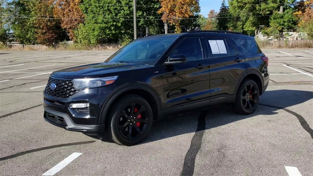 Clean CARFAX. CARFAX One-Owner.Priced below KBB Fair Purchase Price! 20/27 City/Highway MPGAgate Black Metallic 2023 Ford Explorer ST-Line 4WD 10-Speed Automatic 2.3L EcoBoost I-4REMAINDER OF FACTORY WARRANTY, FACTORY CERTIFIED, INCLUDES WARRANTY, GOOD TIRES, GOOD BRAKES, REAR BACK UP CAMERA, LANE MONITOR ALERT, APPLE CAR PLAY ANDROID AUTO, NAVIGATION GPS, LEATHER, RECENT TRADE IN, Explorer ST-Line, 4D Sport Utility, 2.3L EcoBoost I-4, 10-Speed Automatic, 4WD, Agate Black Metallic, Ebony w/Heated ActiveX Captain's Chairs, 12 Speakers, 4-Wheel Disc Brakes, 4G LTE Wi-Fi Hotspot Credit, ABS brakes, Air Conditioning, AM/FM radio: SiriusXM, Auto High-beam Headlights, Auto Start-Stop Removal (DISC), Auto-dimming Rear-View mirror, Automatic temperature control, Brake assist, Bumpers: body-color, Delay-off headlights, Dual front impact airbags, Dual front side impact airbags, Electronic Stability Control, Emergency communication system: SYNC 3 911 Assist, Equipment Group 250A, Exterior Parking Camera Rear, FordPass Connect, Four wheel independent suspension, Front anti-roll bar, Front dual zone A/C, Front fog lights, Fully automatic headlights, Heated door mirrors, Knee airbag, Low tire pressure warning, Navigation System, Occupant sensing airbag, Overhead airbag, Panic alarm, Power door mirrors, Power driver seat, Power Liftgate, Power steering, Power windows, Radio data system, Radio: B&O Sound System by Bang & Olufsen, Rear air conditioning, Rear anti-roll bar, Rear window defroster, Remote keyless entry, Security system, Speed control, Speed-sensing steering, Spoiler, Steering wheel mounted audio controls, SYNC 3 Communications & Entertainment System, Traction control, Twin Panel Moonroof, Voice-Activated Touchscreen Navigation System, 20 Machined Aluminum w/Painted Pockets Wheels, 3.58 Non-Limited-Slip Rear Axle Ratio, 3rd row seats: bench, Alloy wheels, Compass, Driver door bin, Driver vanity mirror, Front & Second Row Floor Liners (16B), Front Bucket Seats, Front Center Armrest, Front reading lights, Heated front seats, Heated steering wheel, Htd ActiveX Trimmed Captain's Chairs w/Miko Insert, Illuminated entry, Leather steering wheel, Outside temperature display, Overhead console, Passenger door bin, Passenger vanity mirror, Power passenger seat, Rain sensing wipers, Rear reading lights, Rear window wiper, Speed-Sensitive Wipers, Split folding rear seat, SYNC 3/Apple CarPlay/Android Auto, Tachometer, Telescoping steering wheel, Tilt steering wheel, Trip computer, Variably intermittent wipers, Wheels: 21 Aluminum, Explorer ST-Line, 4D Sport Utility, 2.3L EcoBoost I-4, 10-Speed Automatic, 4WD, Agate Black Metallic, Ebony w/Heated ActiveX Captain's Chairs, 12 Speakers, 4-Wheel Disc Brakes, 4G LTE Wi-Fi Hotspot Credit, ABS brakes, Air Conditioning, AM/FM radio: SiriusXM, Auto High-beam Headlights, Auto Start-Stop Removal (DISC), Auto-dimming Rear-View mirror, Automatic temperature control, Brake assist, Bumpers: body-color, Delay-off headlights, Dual front impact airbags, Dual front side impact airbags, Electronic Stability Control, Emergency communication system: SYNC 3 911 Assist, Equipment Group 250A, Exterior Parking Camera Rear, FordPass Connect, Four wheel independent suspension, Front anti-roll bar, Front dual zone A/C, Front fog lights, Fully automatic headlights, Heated door mirrors, Knee airbag, Low tire pressure warning, Navigation System, Occupant sensing airbag, Overhead airbag, Panic alarm, Power door mirrors, Power driver seat, Power Liftgate, Power steering, Power windows, Radio data system, Radio: B&O Sound System by Bang & Olufsen, Rear air conditioning, Rear anti-roll bar, Rear window defroster, Remote keyless entry, Security system, Speed control, Speed-sensing steering, Spoiler, Steering wheel mounted audio controls, SYNC 3 Communications & Entertainment System, Traction control, Twin Panel Moonroof, Voice-Activated Touchscreen Navigation System.Joe knows used cars.
