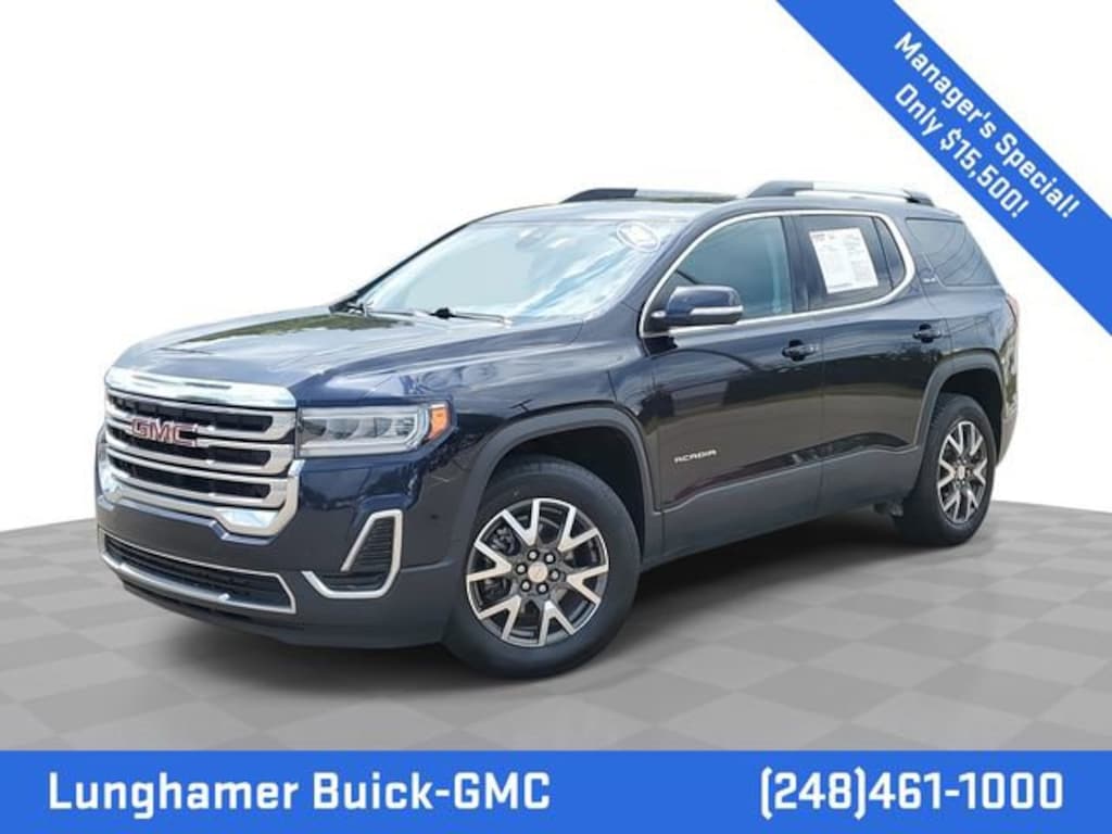 Clean CARFAX. CARFAX One-Owner.Certified. 19/27 City/Highway MPGMidnight Blue Metallic 2021 GMC Acadia SLE FWD 9-Speed Automatic 3.6L V6 SIDIFWD, Jet Black Cloth, 120-Volt Power Outlet, 8-Way Power Driver Seat Adjuster, Brushed Aluminum Roof Rails, Driver Convenience Package, Hands Free Power Programmable Liftgate, Heated Driver & Front Passenger Seats, Power Driver Lumbar Control Seat Adjuster, Preferred Equipment Group 3SA, Remote Start, Spoiler.Our dealership is family owned and operated and has been serving Oakland County and its surrounding communities since 1954. Lunghamer Buick GMC is focused on excellent customer service. We will find the right vehicle for your life style, the right financing to fit your budget, and a total ownership experience second to none. We are here to service you. Joe Knows that service repairs never fit into your busy schedule. That's why we offer convenient service hours Monday through Friday, 8am-5pm. We feature highly trained service advisors and factory trained technicians, we feature state of the art equipment, and we realize that repairing your vehicle right the first time at a fair price will keep you coming back for years to come. We invite you to come down and take a stroll through our large inventory of new and used vehicles, talk to our sales and service advisors, have a free coffee, tea, or water and make Lunghamer Buick GMC your sales and servicing dealer. Call us today at 248-461-1000 and let us know how we can help!JOE KNOWS USED CARS! * CPO APR AVAILABLE ON SELECT MODELS FOR WELL QUALIFIED BUYERS.