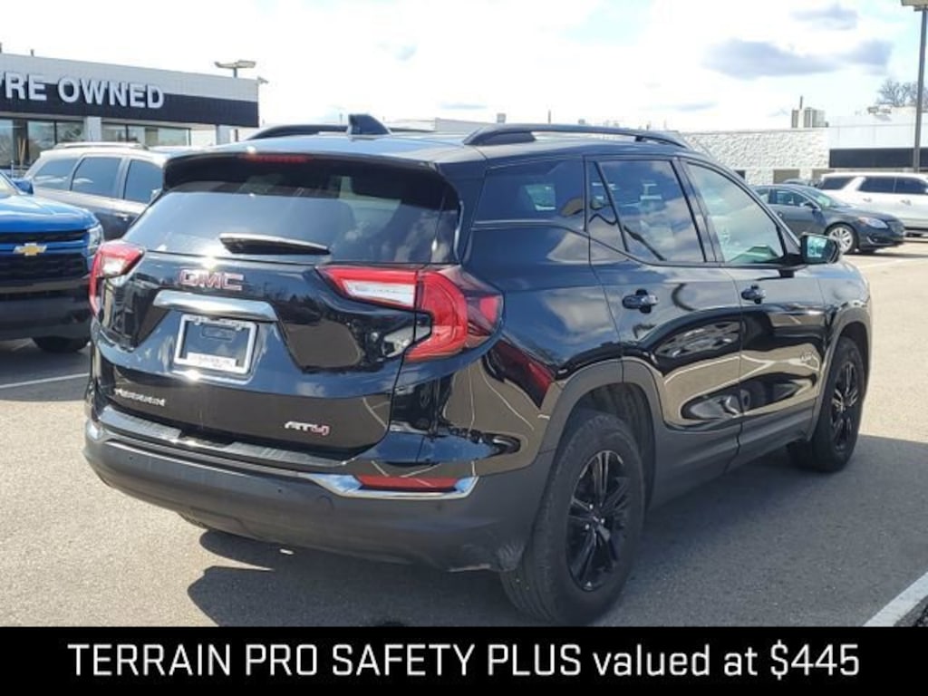 The 2023 GMC Terrain AT4 is a rugged and sophisticated SUV that's ready to elevate your driving experience. With its striking Ebony Twilight Metallic exterior and robust 1.5L DOHC engine paired with a 9-speed automatic transmission, this Terrain AT4 delivers a dynamic performance that's both efficient and capable.- Good tires- Apple CarPlay and Android Auto- Good brakes- Terrain Pro Safety Plus package with Adaptive Cruise Control, Safety Alert Seat, and Rear Park Assist- Side Blind Zone and Rear Cross Traffic AlertBeyond its impressive performance, the Terrain AT4 is packed with a wealth of premium features that cater to your every need. Enjoy the convenience of a power liftgate, the comfort of heated front seats, and the peace of mind provided by advanced safety technologies like Lane Change Alert with Side Blind Zone Alert and Rear Cross-Traffic Alert.This Terrain AT4 is not just any SUV it's a certified pre-owned vehicle, meaning it has undergone a rigorous inspection and comes with the assurance of a comprehensive warranty. With low mileage of just 17,341, this Terrain AT4 is ready to provide you with years of reliable and enjoyable driving.The cabin of the Terrain AT4 is a refined and well-appointed space, featuring perforated leather-appointed seating with the AT4 logo, a heated steering wheel, and wireless Apple CarPlay and Android Auto integration. The 8-inch infotainment display puts a wealth of connectivity and entertainment at your fingertips, while the 6-speaker audio system delivers a premium listening experience.Versatility is also a hallmark of the Terrain AT4, with a split-folding rear seat and ample cargo space to accommodate your active lifestyle. Whether you're embarking on a weekend adventure or navigating the daily commute, this SUV is ready to handle it all with confidence and style.Experience the exceptional blend of capability, technology, and refinement that the 2023 GMC Terrain AT4 has to offer. Visit our showroom today and let us demonstrate how this exceptional SUV can elevate your driving experience.