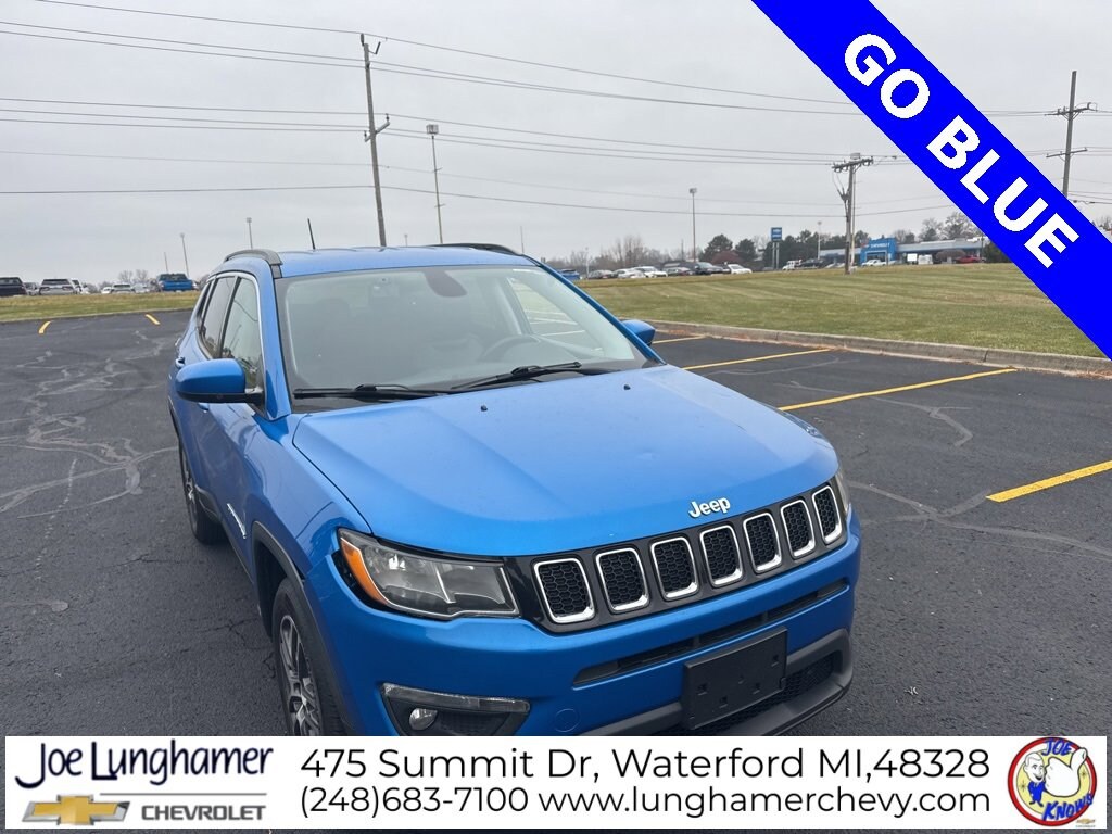 REMAINDER OF FACTORY WARRANTY, FACTORY CERTIFIED, INCLUDES WARRANTY, GOOD TIRES, GOOD BRAKES, RECENT TRADE IN, New Compass Latitude, 4D Sport Utility, 2.4L I4 MultiAir, 6-Speed Aisin Automatic, FWD, Laser Blue Pearlcoat, Black Cloth, 1-Year SiriusXM Guardian Trial, 1-Year SiriusXM Radio Service, 115V Auxiliary Power Outlet, 3.502 Axle Ratio, 4-Way Power Lumbar Adjust, 4-Wheel Disc Brakes, 5-Year SiriusXM Traffic Service, 5-Year SiriusXM Travel Link Service, 6 Speakers, 8.4 Touch Screen Display, ABS brakes, Air Conditioning, Air Conditioning ATC w/Dual Zone Control, Alloy wheels, AM/FM radio, Anti-whiplash front head restraints, Apple CarPlay, Auto-Dimming Rear-View Mirror, Brake assist, Cluster 7.0 Color Driver Info Display, Delay-off headlights, Dual front impact airbags, Dual front side impact airbags, Electronic Stability Control, For Details Visit DriveUconnect.com, For More Info, Call 800-643-2112, Four wheel independent suspension, Front anti-roll bar, Front Bucket Seats, Front Center Armrest w/Storage, Front fog lights, Fully automatic headlights, Google Android Auto, GPS Navigation, HD Radio, Knee airbag, Low tire pressure warning, Navigation Group, Occupant sensing airbag, Overhead airbag, Overhead console, ParkView Rear Back-Up Camera, Passenger door bin, Passenger vanity mirror, Popular Equipment Group, Power 8-Way Driver/Manual 6-Way Passenger Seats, Power Liftgate, Power steering, Power windows, Premium Cloth/Vinyl Bucket Seats, Quick Order Package 2FJ, Radio: Uconnect 3 w/5 Display, Radio: Uconnect 4C Nav w/8.4 Display, Rear anti-roll bar, Rear seat center armrest, Rear window defroster, Rear window wiper, Remote keyless entry, Remote Start System, SiriusXM Satellite Radio, SiriusXM Traffic Plus, SiriusXM Travel Link, Split folding rear seat, Steering wheel mounted audio controls, Tachometer, Telescoping steering wheel, Tilt steering wheel, Traction control, Trip computer, USB Host Flip, Variably intermittent wipers, Wheels: 17 x 7.0 Silver Painted Aluminum, Block heater, Bumpers: body-color, Compass, Driver door bin, Driver vanity mirror, Front reading lights, Heated door mirrors, Illuminated entry, Leather Shift Knob, Outside temperature display, Panic alarm, Power door mirrors, Roof rack: rails only, Speed control, Spoiler, Wheels: 17 x 7.0 Polished/Granite Pockets Alum, New Compass Latitude, 4D Sport Utility, 2.4L I4 MultiAir, 6-Speed Aisin Automatic, FWD, Laser Blue Pearlcoat, Black Cloth, 1-Year SiriusXM Guardian Trial, 1-Year SiriusXM Radio Service, 115V Auxiliary Power Outlet, 3.502 Axle Ratio, 4-Way Power Lumbar Adjust, 4-Wheel Disc Brakes, 5-Year SiriusXM Traffic Service, 5-Year SiriusXM Travel Link Service, 6 Speakers, 8.4 Touch Screen Display, ABS brakes, Air Conditioning, Air Conditioning ATC w/Dual Zone Control, Alloy wheels, AM/FM radio, Anti-whiplash front head restraints, Apple CarPlay, Auto-Dimming Rear-View Mirror, Brake assist, Cluster 7.0 Color Driver Info Display, Delay-off headlights, Dual front impact airbags, Dual front side impact airbags, Electronic Stability Control, For Details Visit DriveUconnect.com, For More Info, Call 800-643-2112, Four wheel independent suspension, Front anti-roll bar, Front Bucket Seats, Front Center Armrest w/Storage, Front fog lights, Fully automatic headlights, Google Android Auto, GPS Navigation, HD Radio, Knee airbag, Low tire pressure warning, Navigation Group, Occupant sensing airbag, Overhead airbag, Overhead console, ParkView Rear Back-Up Camera, Passenger door bin, Passenger vanity mirror, Popular Equipment Group, Power 8-Way Driver/Manual 6-Way Passenger Seats, Power Liftgate, Power steering, Power windows, Premium Cloth/Vinyl Bucket Seats, Quick Order Package 2FJ, Radio: Uconnect 3 w/5 Display, Radio: Uconnect 4C Nav w/8.4 Display, Rear anti-roll bar, Rear seat center a